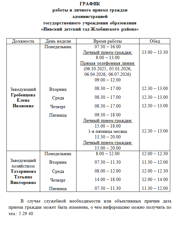Государственное учреждение образования «Нивский детский сад Жлобинского района»