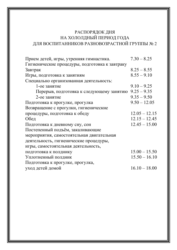 Распорядок дня