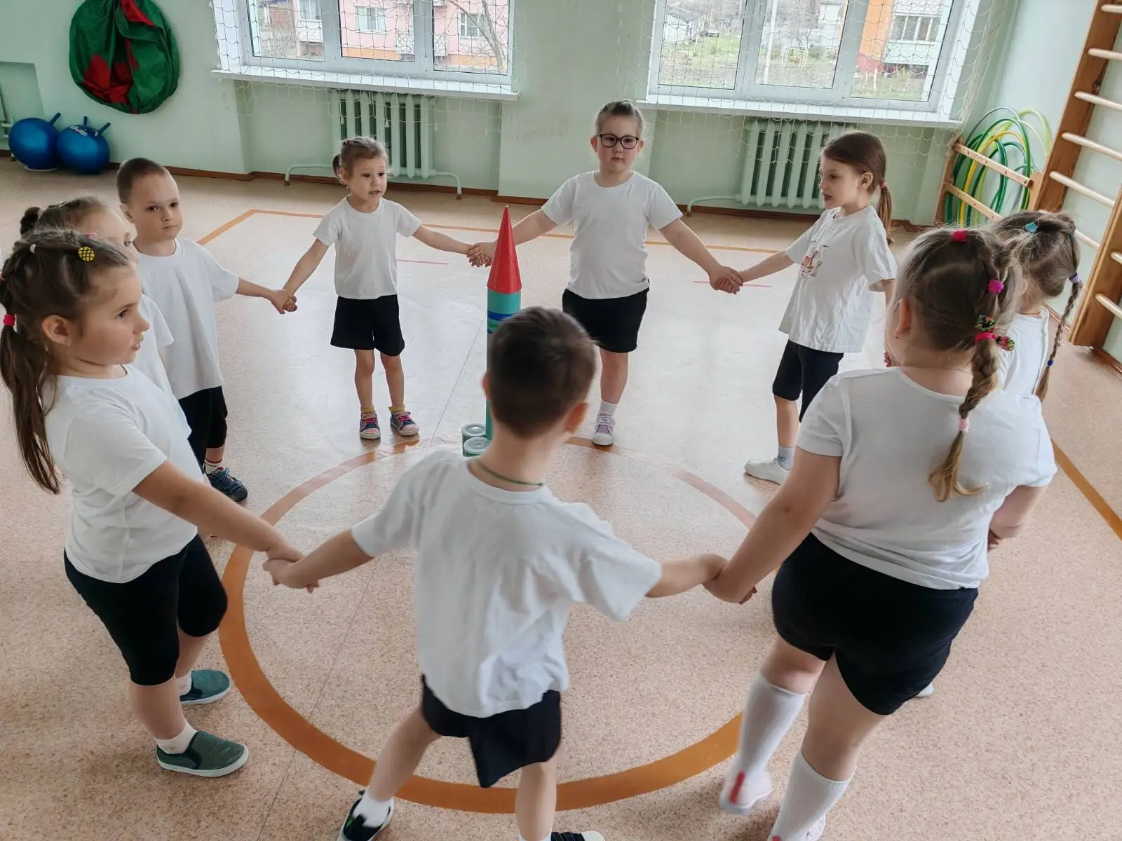 - «Космическая стыковка»: Парная игра, где детям нужно соединить ладони, изображая стыковку кораблей «Союз» и «Аполлон».